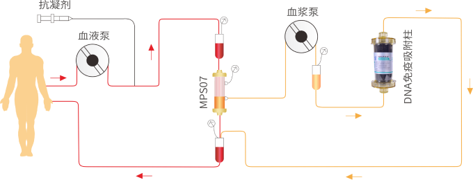 DNA免疫吸附柱是在炭化树脂上固定小牛胸腺DNA制成DNA免疫吸附剂,与柱体等组装成免疫吸附柱,具有对抗DNA抗体核抗体的特异性识别和吸附能力。